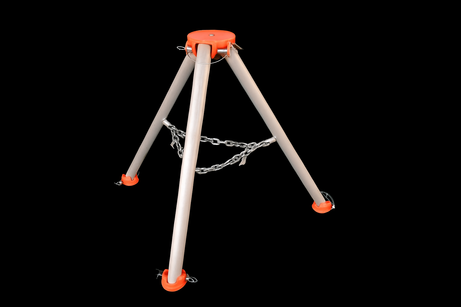 Load Testing Tripod rated at 10,000 lbs for physical load testing of roof or wall mounted anchors. Feet have rotating plates for accommodating low-sloped roof decks and adjustable chain provided allows for multiple leg-spread configurations. Top plate is pre-drilled for use with most hydraulic load testing rams. Weight: 35 lbs. Made in USA.